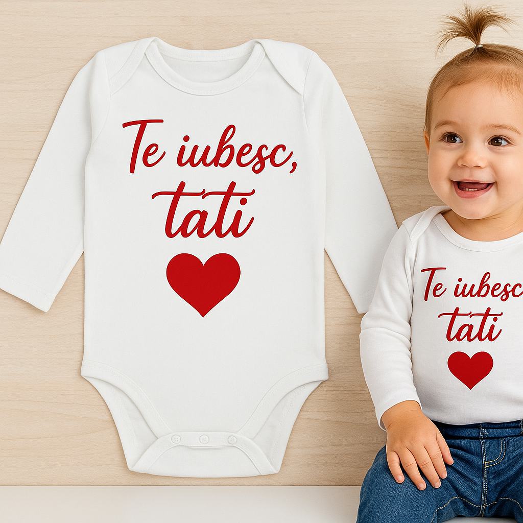 Realizat din bumbac moale, cu mânecă lungă, ideal pentru zilele mai răcoroase, acest body nu este doar o piesă vestimentară — este un moment de emoție, surprins în hainele celor mici.