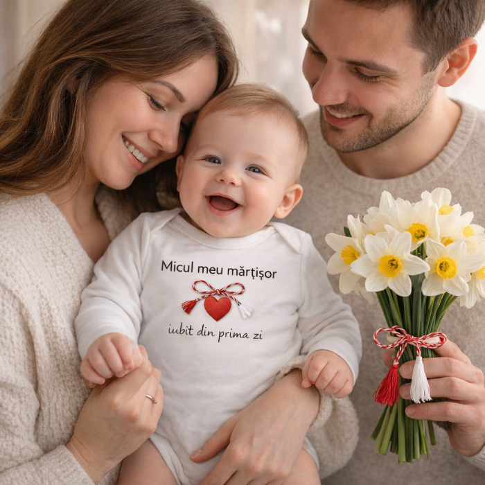 Body-ul pentru bebe „Micul meu martisor” este un cadou plin de emotie, creat special pentru a sarbatori primavara si iubirea pentru cei mai mici membri ai familiei. Cu un design delicat si mesaj cald, acest body transforma ziua de 1 Martie intr-un moment de neuitat.