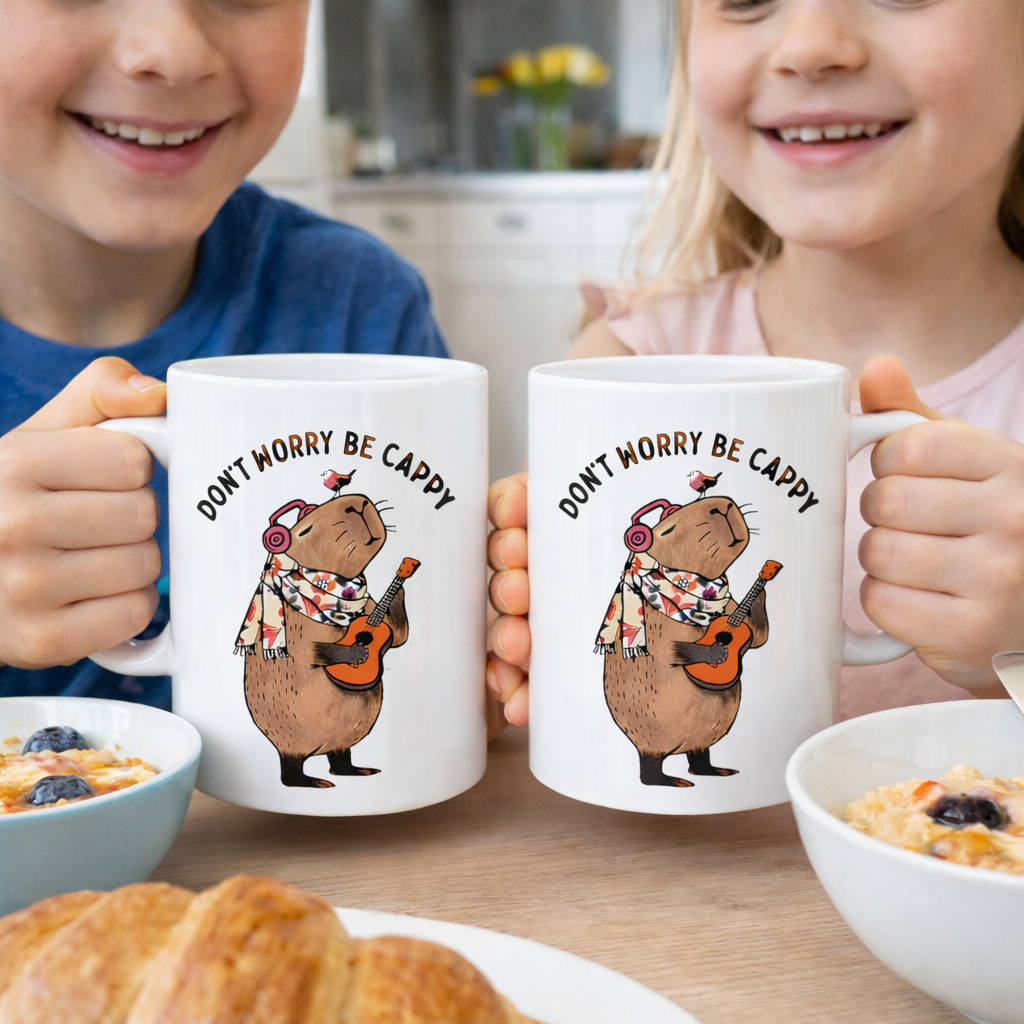 Cana ceramica „Dont worry be cappy” cu imprimeu capybara este alegerea perfecta pentru iubitorii de animale si pentru oamenii veseli care apreciaza mesajele pozitive. Designul simpatic cu capybara relaxata transmite o stare de calm si buna dispozitie, fiind ideala pentru inceputuri de zi mai frumoase.