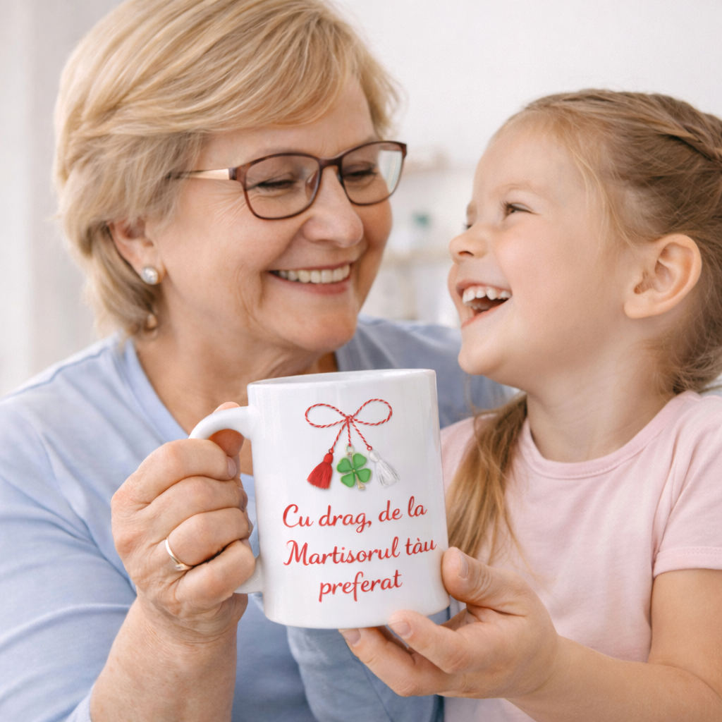 Martisorul este simbolul primaverii, al norocului si al iubirii daruite din inima. Cana „Cu drag, de la Martisorul tau preferat” este un cadou special creat pentru bunici, menit sa aduca zambete sincere si emotie in fiecare dimineata.